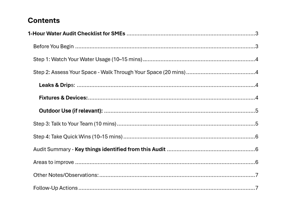 In just one hour, you’ll: Identify where and how water is being used in your business. Spot leaks, inefficiencies, and waste points. Highlight easy, cost-effective actions to reduce usage and improve efficiency. Perfect for office spaces, retail shops, cafes, and service-based businesses, this checklist gives you a simple, actionable way to take control of your water footprint and build a greener, more resilient operation.